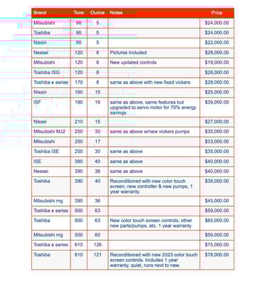 For a limited time 170 Ton with new parts, including new controls and with a 2 year warranty