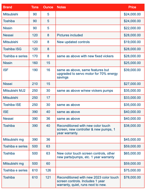We offer a wide range of both new and used injection molding machines for sale. Whether you are looking for a brand-new machine to expand your production capacity or a cost-effective used machine to meet your budget, we have the perfect solution for you. Our injection molding machines are of the highest quality and are sourced from trusted manufacturers. With advanced technology and precision engineering, these machines ensure efficient and reliable production processes. Our experienced team is always ready to assist you in selecting the right machine that suits your specific requirements. We provide comprehensive support from installation to after-sales service, ensuring smooth operation and maximum productivity. Don't miss out on the opportunity to enhance your manufacturing capabilities with our top-notch injection molding machines. Contact us today to explore our extensive range and discuss your needs.
